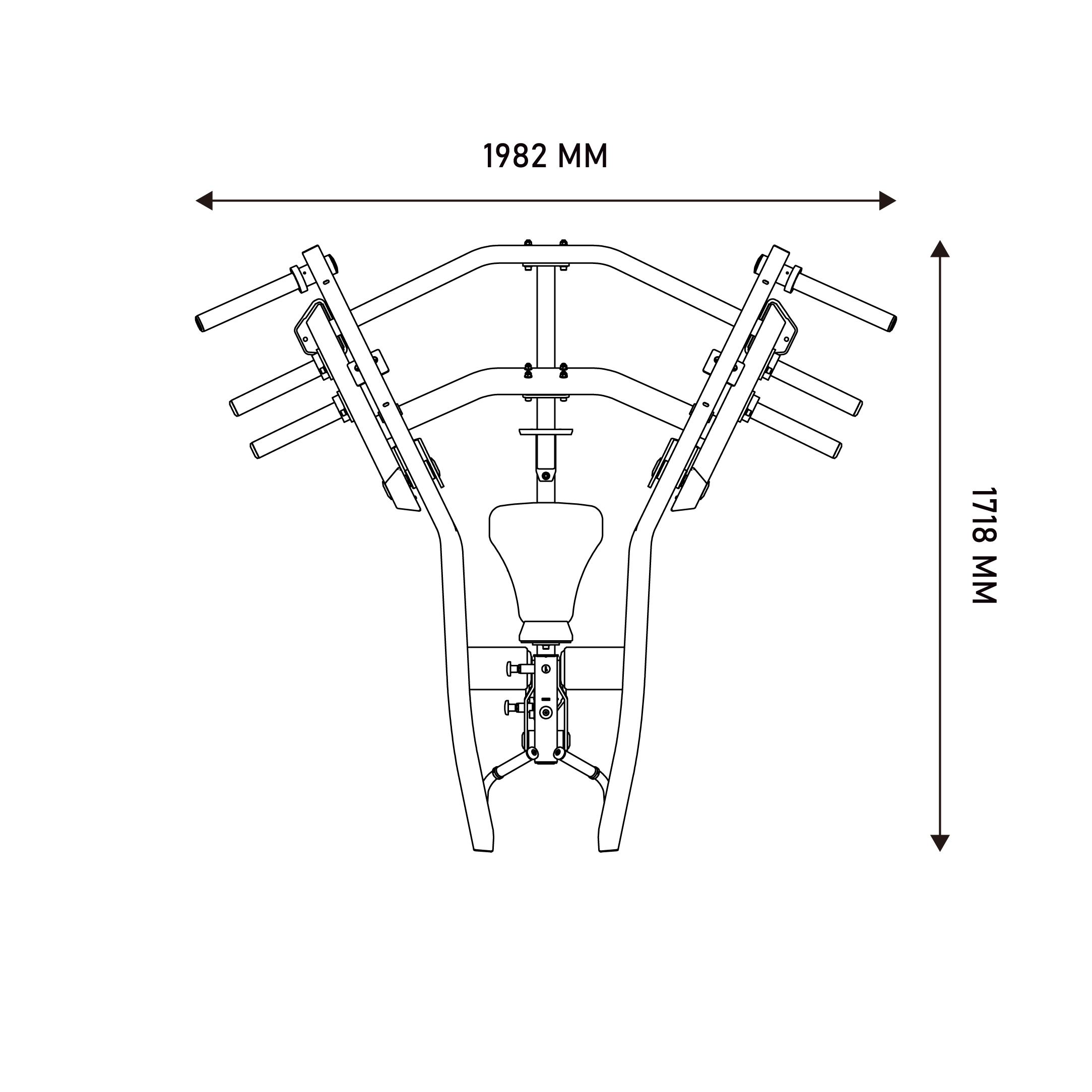 Independent movement arms and diverging motion allow for equal strength development and optimized training effect.