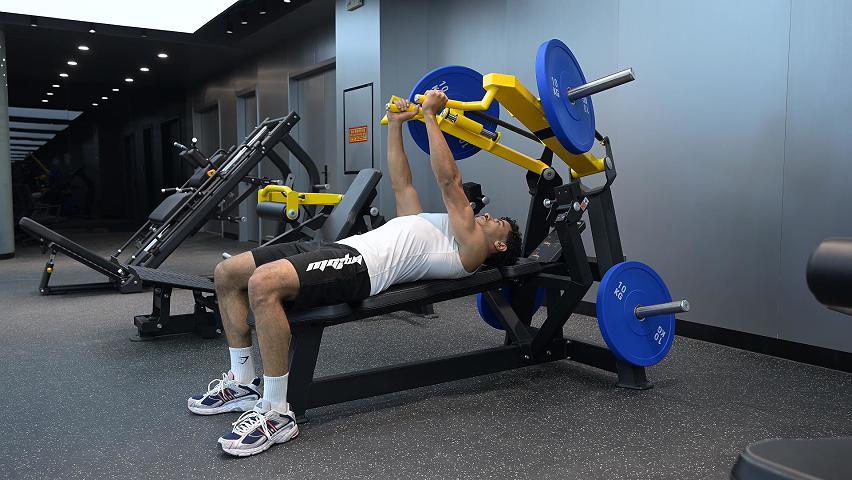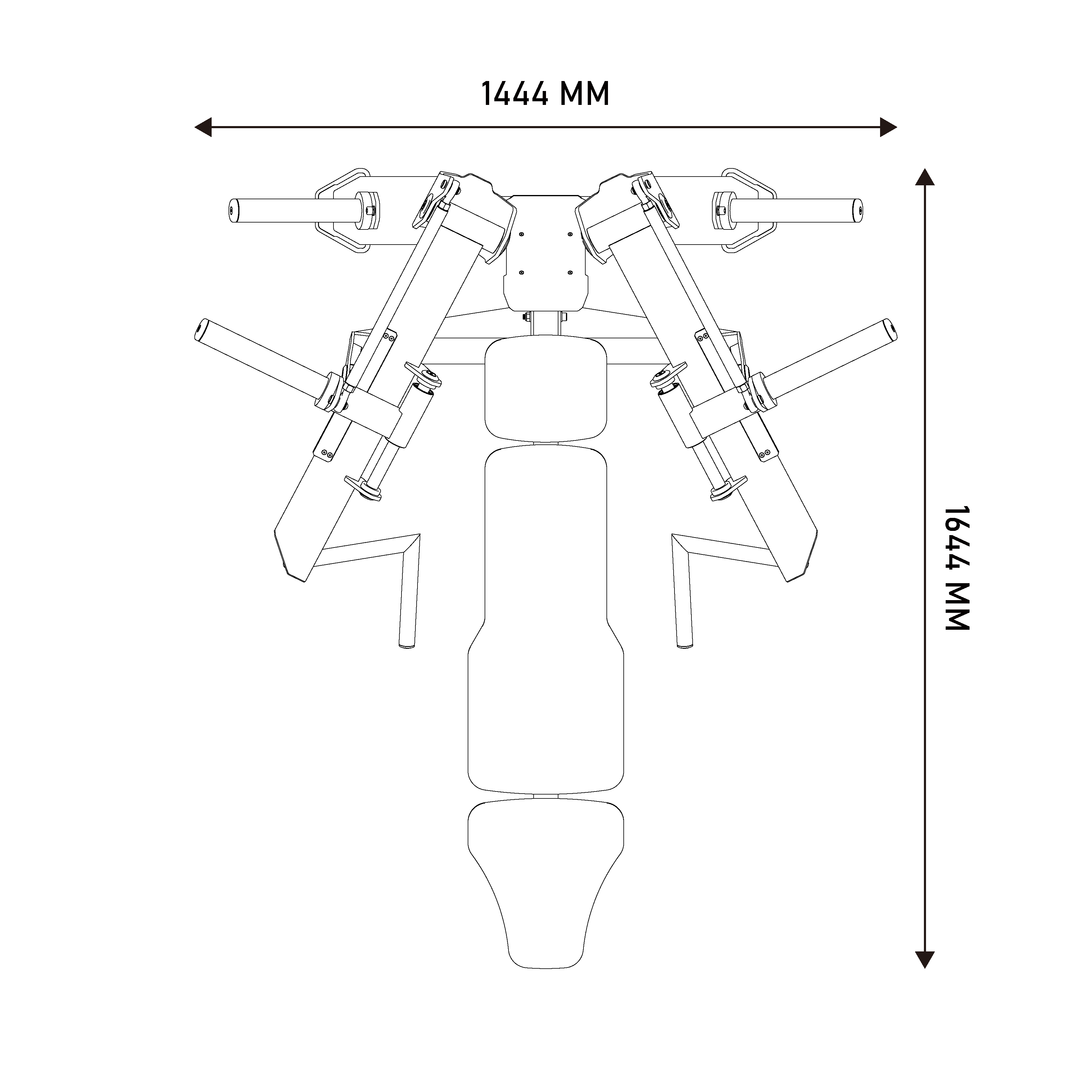 Independent press arms with converging motion allows for equal strength development and optimize training effect.