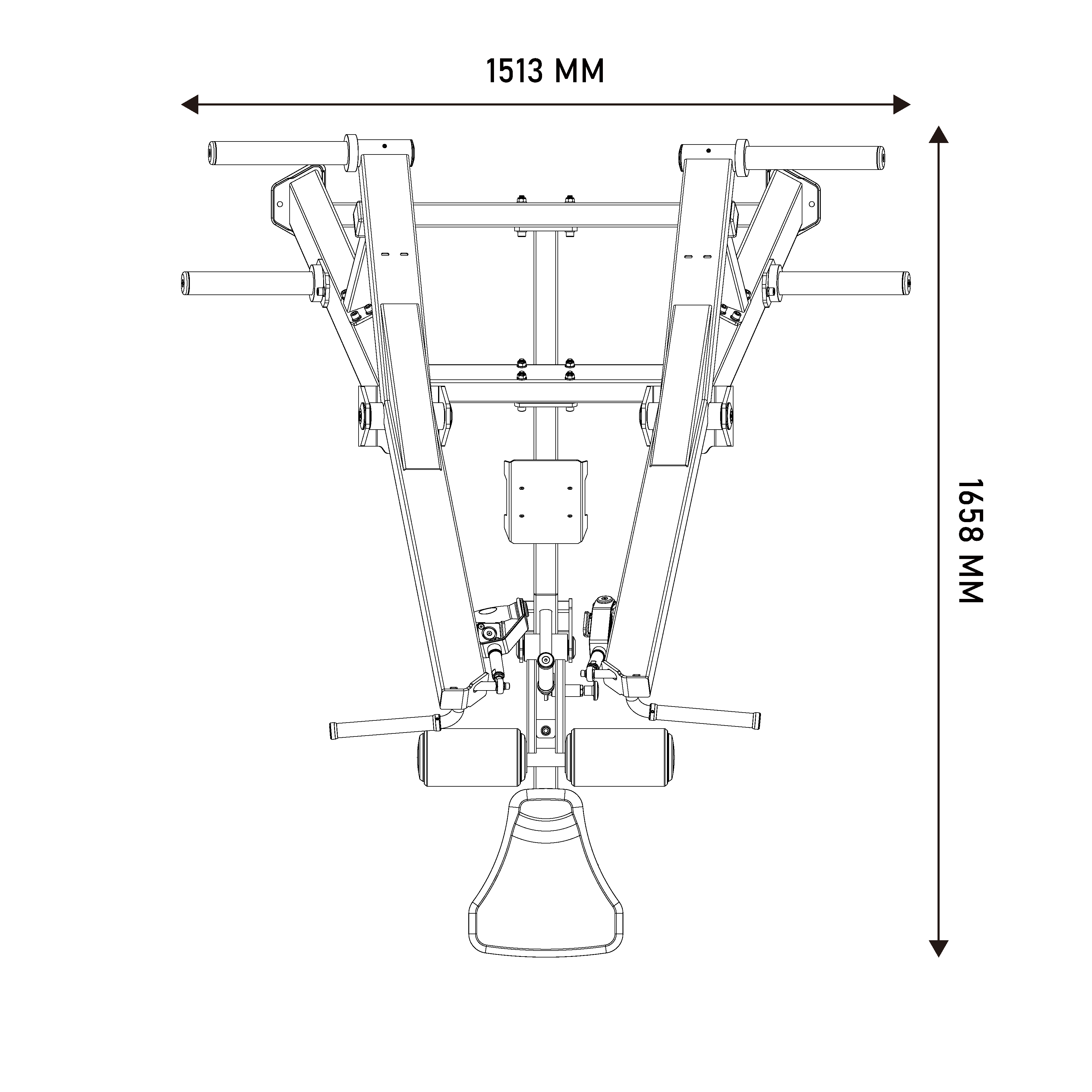 Independent movement arms and diverging motion allows for equal strength development and optimize training effect.