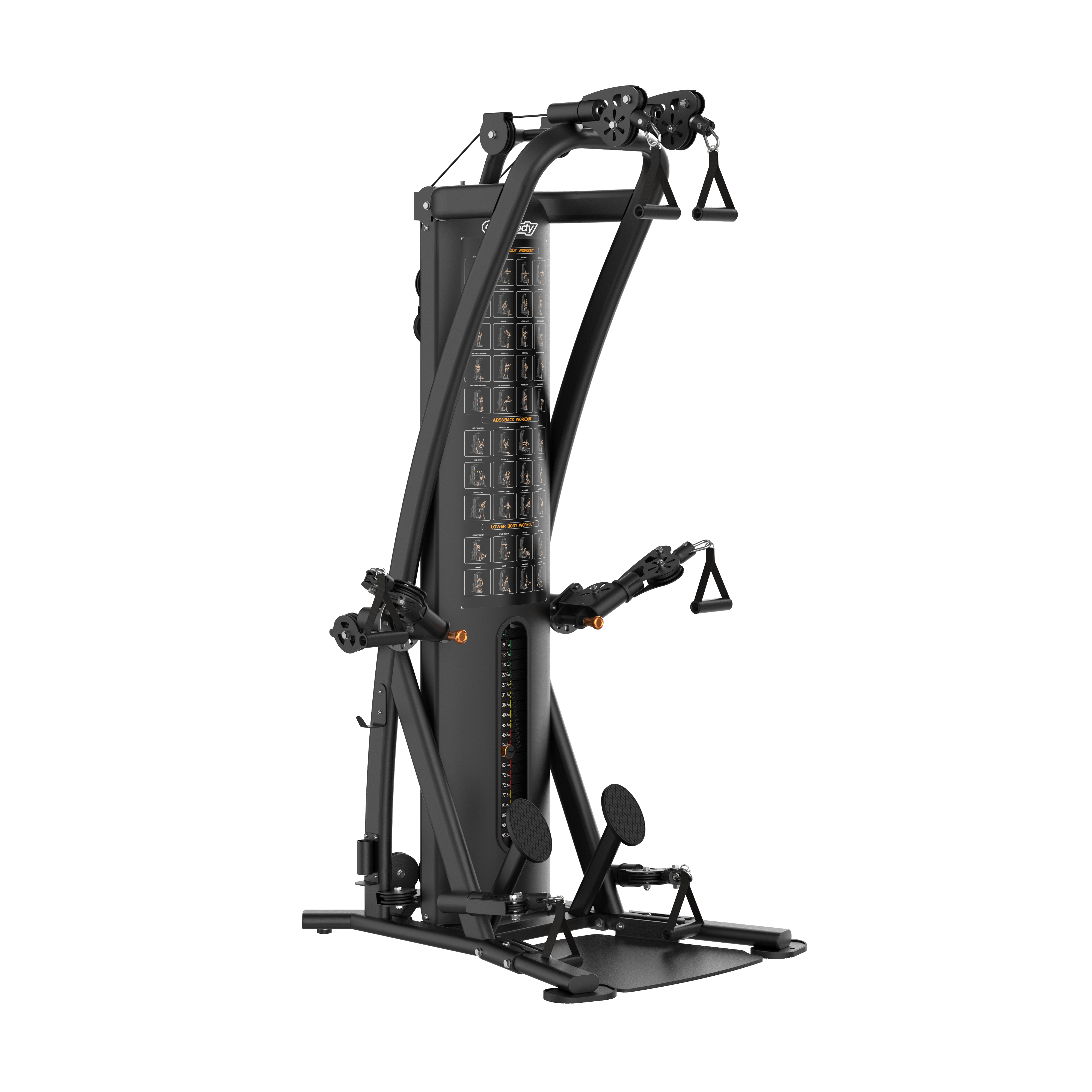 180 degrees rotating swivel middle pulleys increase exercise variety.
