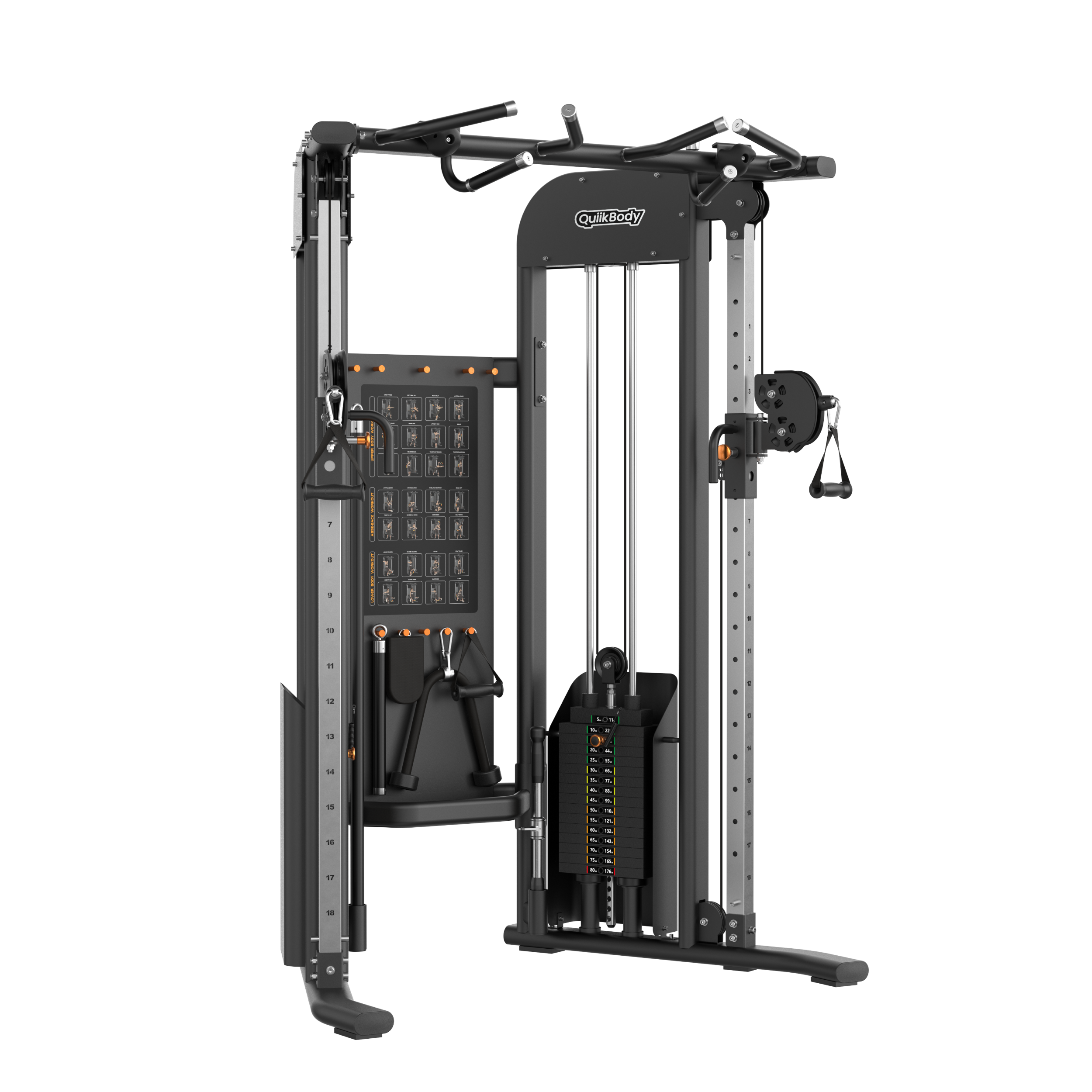 Standard 80 kgs weight stack, adding 25 kgs total weight to create a Super Stack.