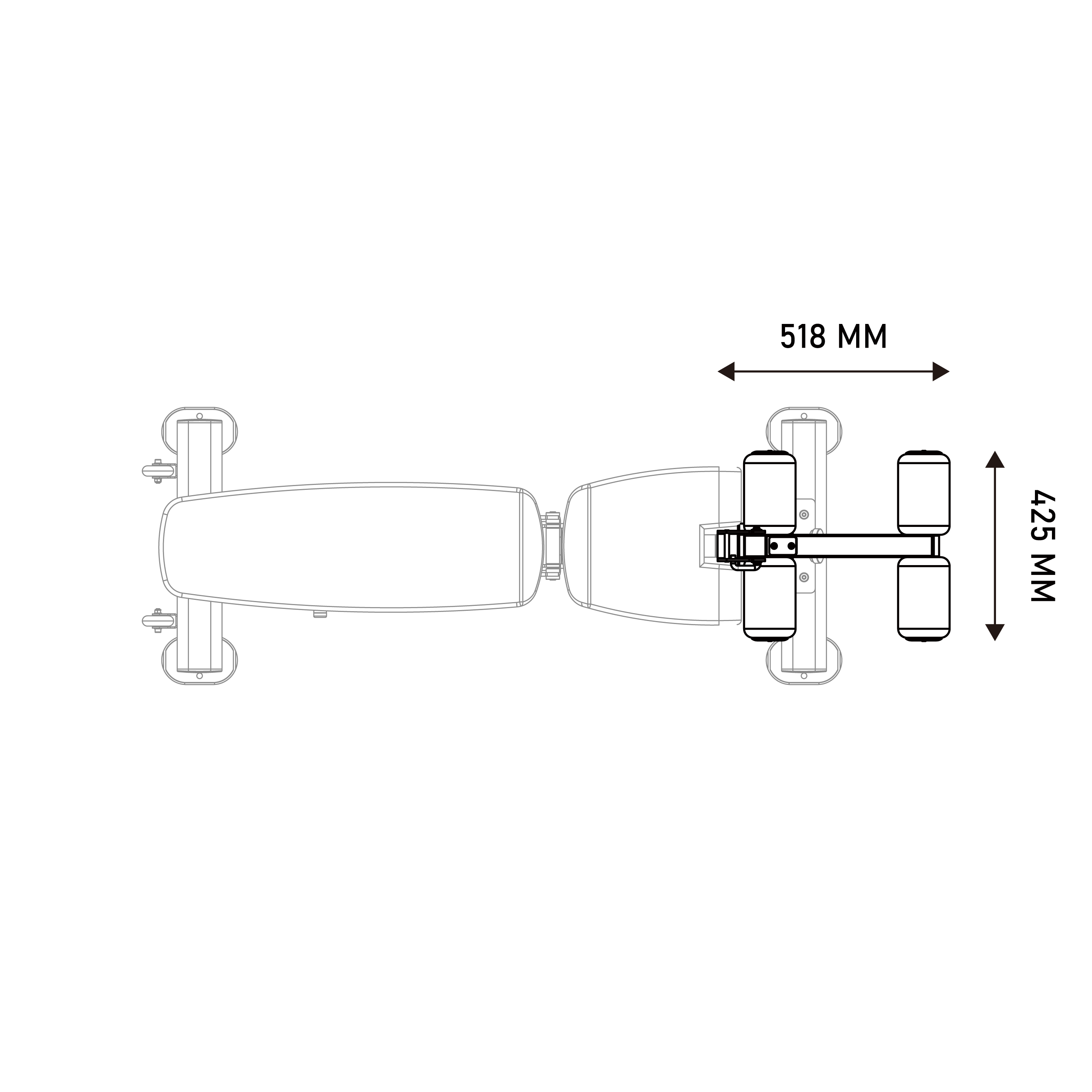 Locking catch enables legs to locked in place for abdomimal exercise.