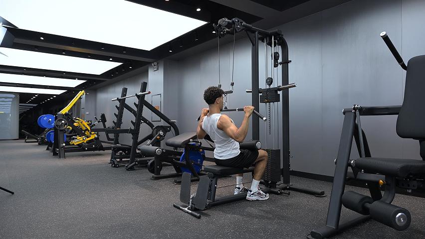 Low pulley station with built-in footplate which also could be positioned at flat or vertical angles.